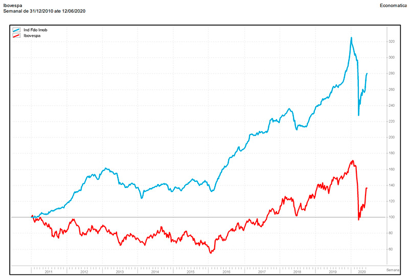 No Brasil, o IFIX (índice dos Fundos Imobiliários) vem superando o Ibovespa nos últimos 10 anos.