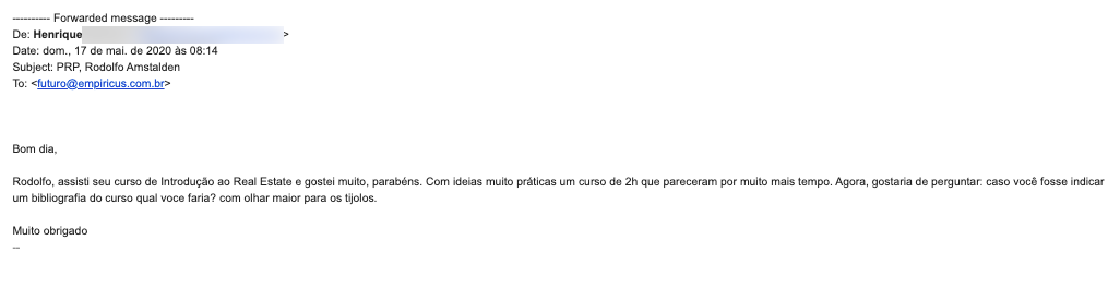 Pensando nisso, e em como eu gostaria de alargar essa fechadura para todos os leitores da Empiricus, resolvi aproveitar o período de quarentena para montar um treinamento de alto nível sobre imóveis, baseado em tudo aquilo que aprendi lá fora.