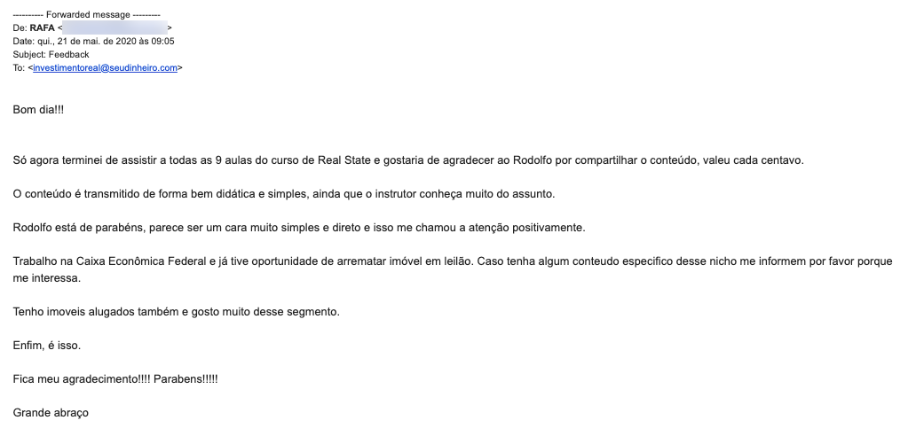 A resposta que recebemos dos nossos assinantes do Renda Imobiliária me deixa muito feliz.