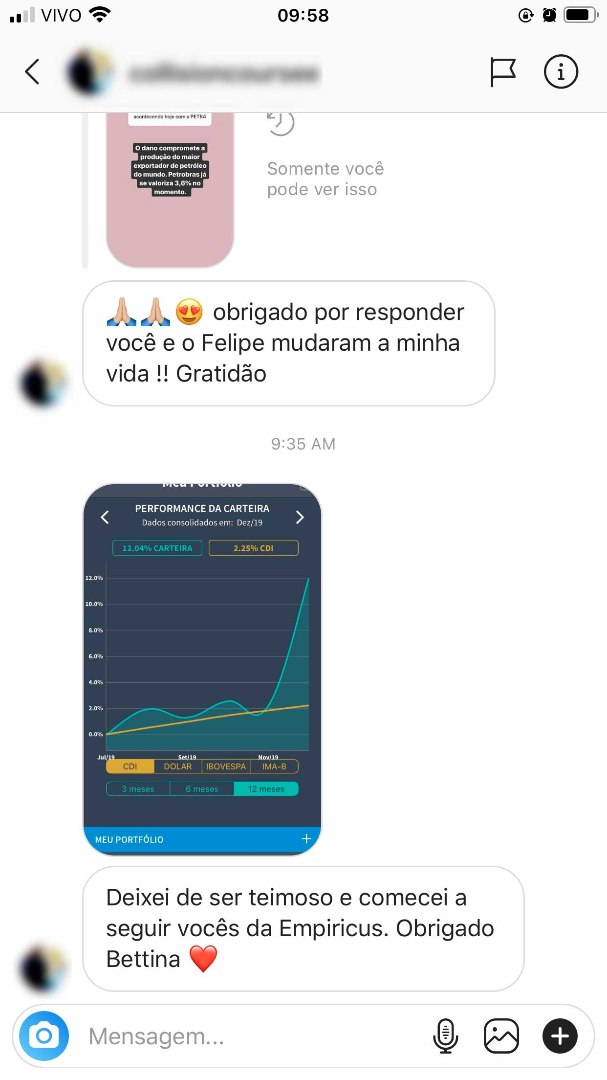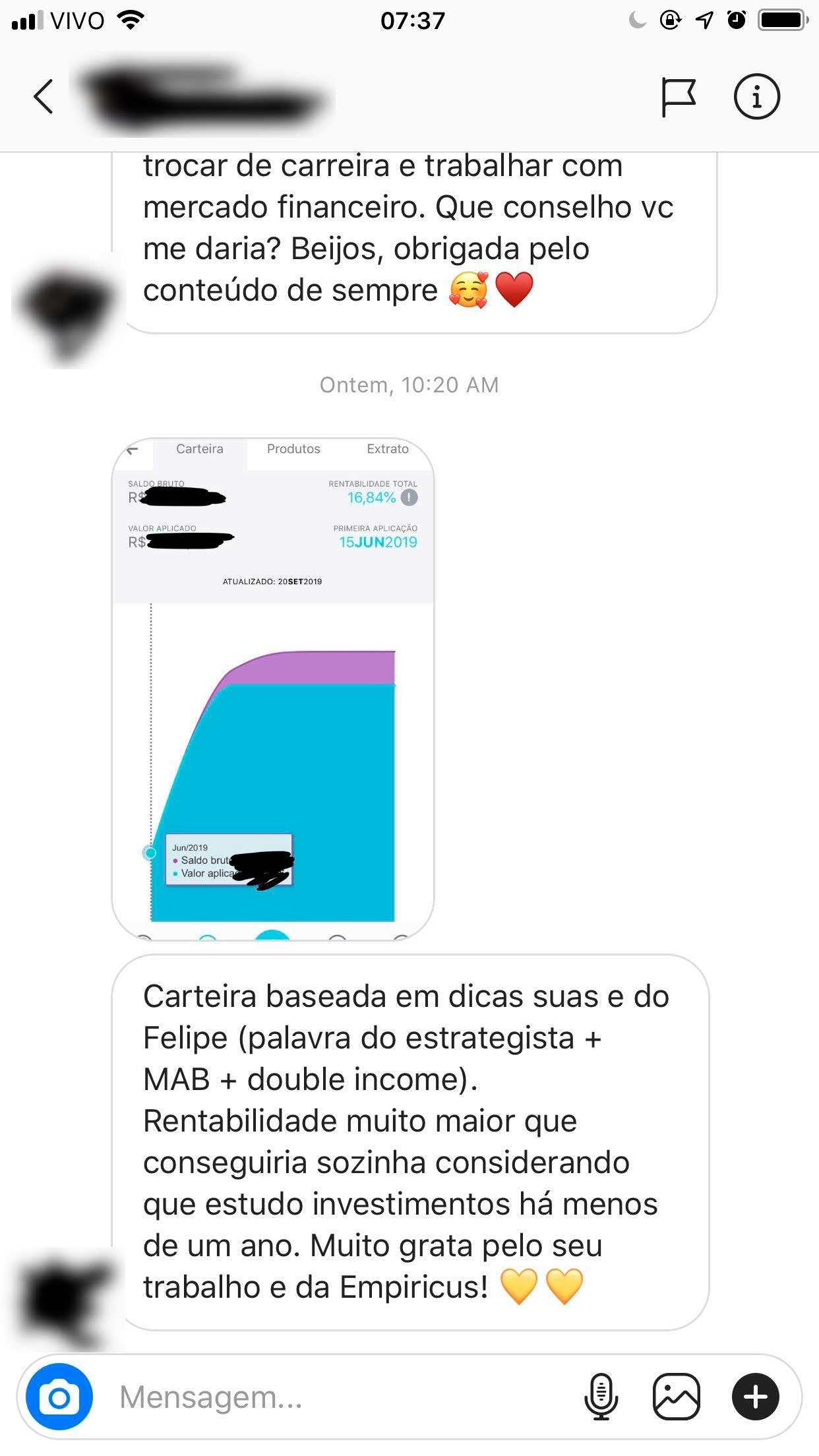 A regra de seleção dessas 10 pessoas é simples: o BI da Empiricus identifica quem teve maior engajamento no curso… quem assistiu todas as aulas… quem participou de todos os plantões de dúvidas… quem interagiu mais.