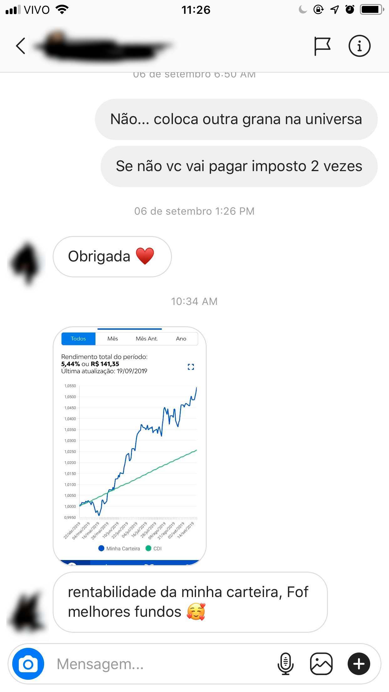 Meu dinheiro pessoal hoje tá praticamente só em fundos…
