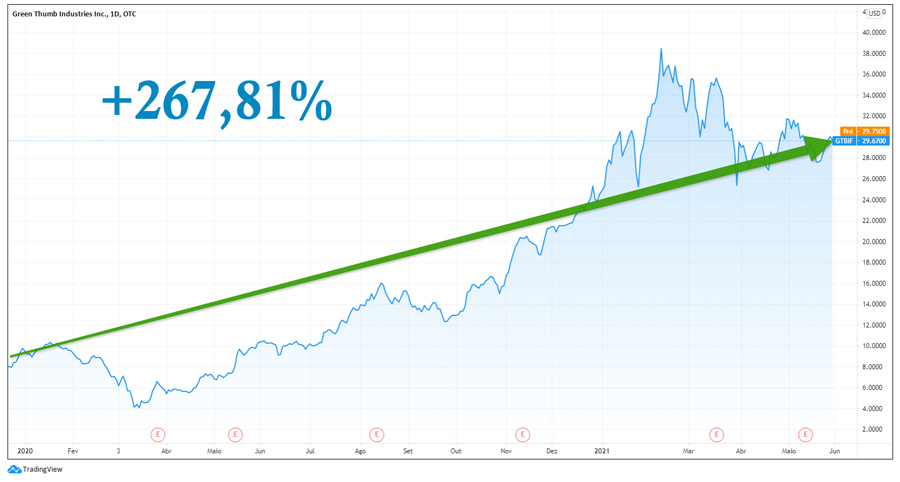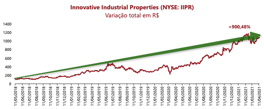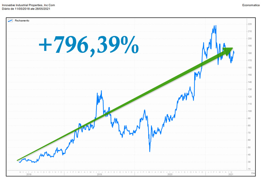 Por exemplo, ele recomendou a empresa de produção de cannabis medicinal Innovative Industrial Properties em 2018 e, desde então, a ação subiu 796% em reais.