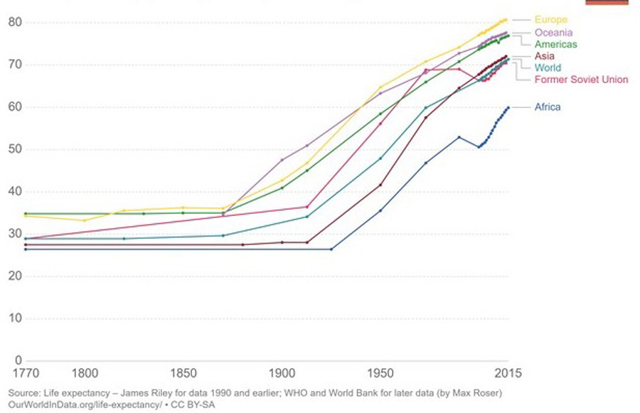 Bilhões de pessoas saíram da pobreza e a expectativa de vida no mundo aumentou drasticamente.