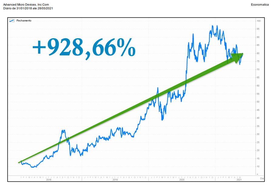 Ele recomendou investir em AMD, uma empresa americana de microchips em 2018 e, desde então, a ação subiu 928% - contando a valorização do dólar no período…