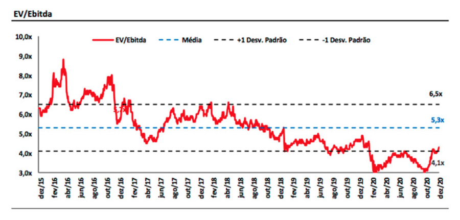 Mas, falando da capacidade dessa empresa gerar resultados e multiplicar ainda mais de valor, fazendo uma análise dos números históricos, podemos ver que hoje ela negocia a múltiplos muito abaixo da média dos últimos cinco anos.