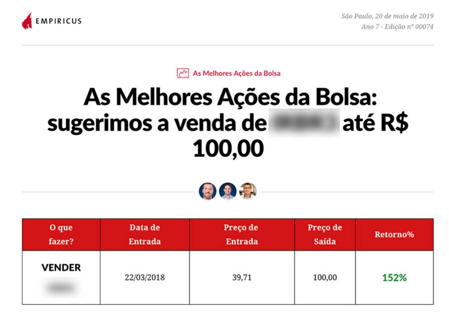 Do lado direito da tela, estão as ações que eu acredito que os investidores devem evitar, distanciamento mesmo.