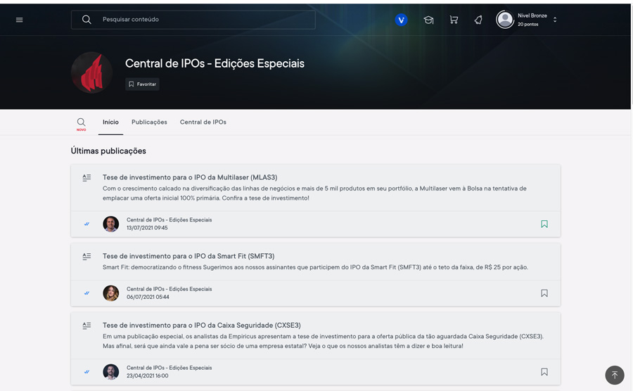 Além de ter acesso às nossas publicações especiais sobre IPOs, você também terá as recomendações de um dos maiores especialistas em ações do país.