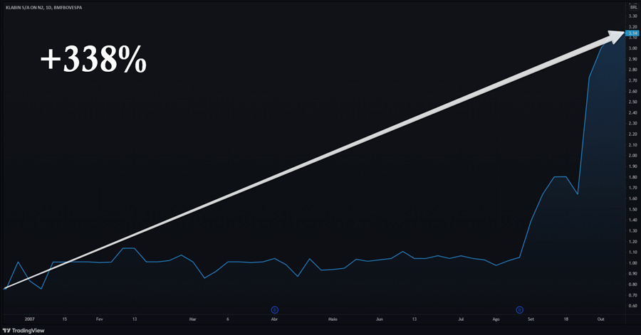 Já Klabin Segall (KLBN3) multiplicou de valor mais de 4 vezes em apenas um ano pós-IPO, entregando um belo lucro de +338%.