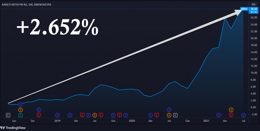 No total, ela subiu +2.776% e multiplicou o dinheiro dos investidores por quase 29 vezes no longo prazo.
