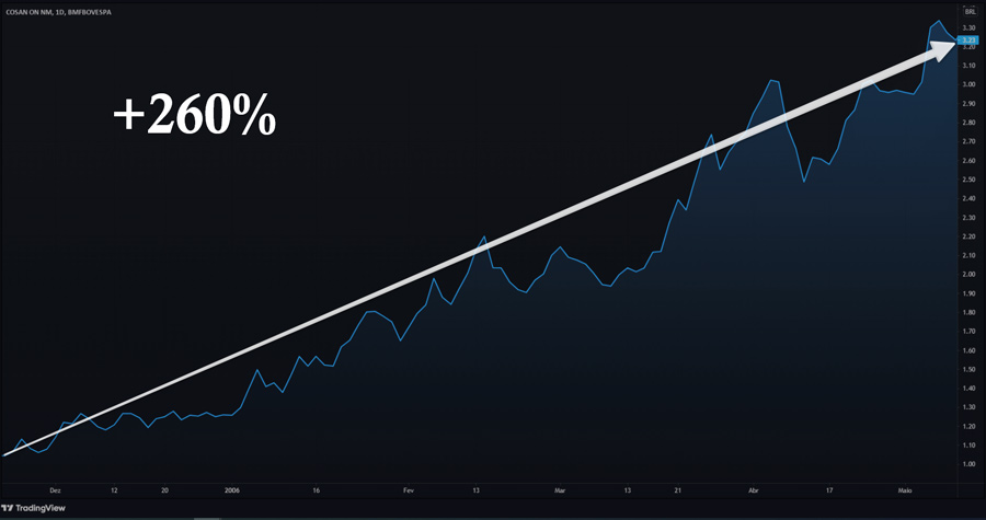 Em um ano, já tinha subido +106%, dobrando de valor.