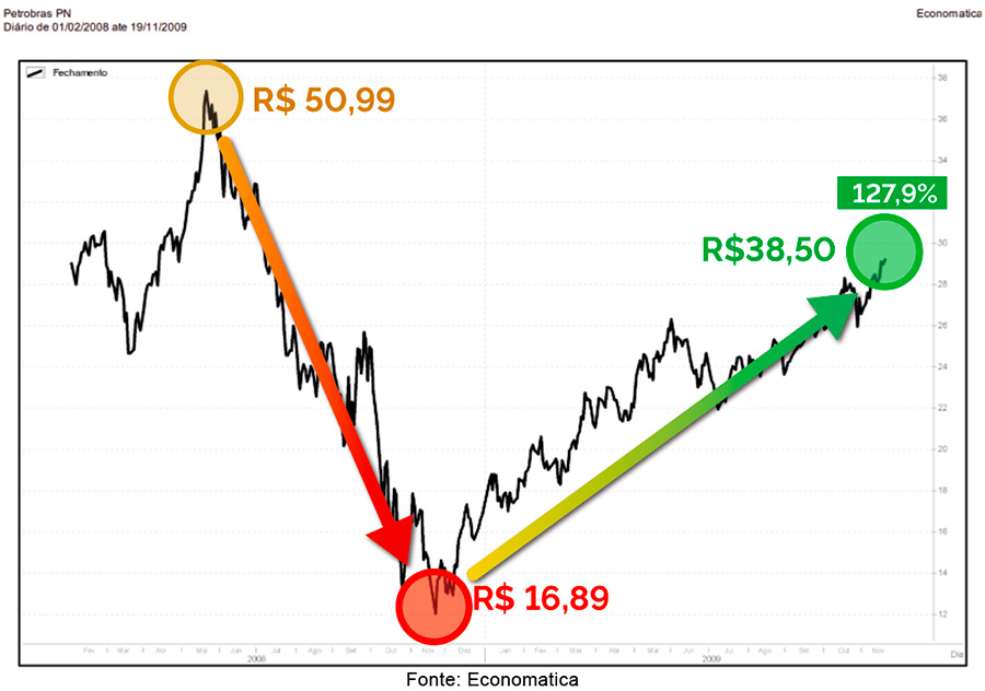 Quem comprou as ações certas na crise de 2008 ganhou muito dinheiro…