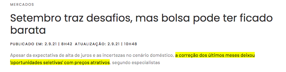Como te disse, as recentes quedas da Bolsa jogou o preço da maioria das ações para baixo.