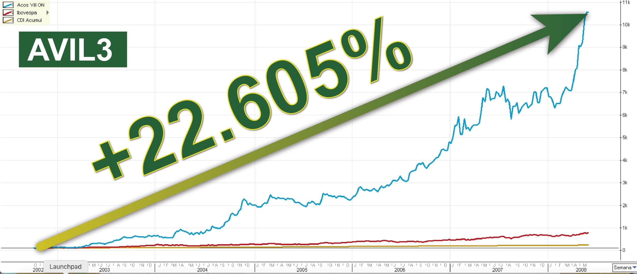 Pra uma porrada de 2.051%, entre 2002 e 2008.