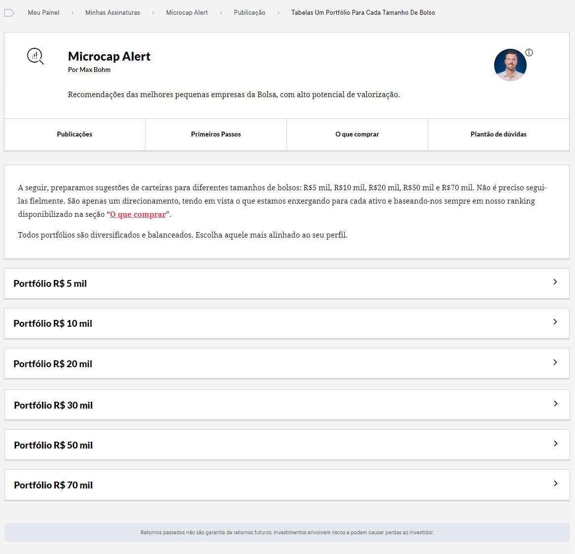 Além disso, como microcaps são naturalmente menos líquidas, podemos desativar esta página a qualquer momento, se percebermos uma distorção de preços nos ativos.