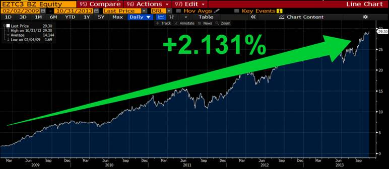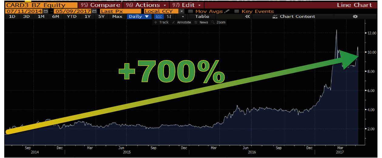 Seu papel acompanhou a escala ascendente e conseguimos apurar uma valorização de +1.292% até o final de fevereiro deste ano.