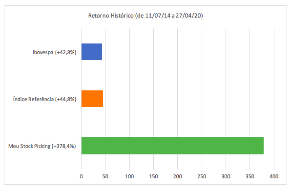 E a barra verde, o desempenho da minha lista de Stock Picking: +378,4%.