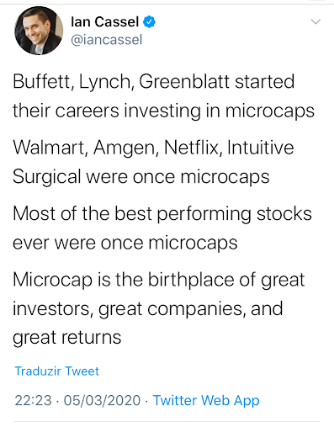 Na minha opinião, uma carteira de ações equilibrada deve ter 70% de alocação em empresas grandes e 30% em Microcaps.