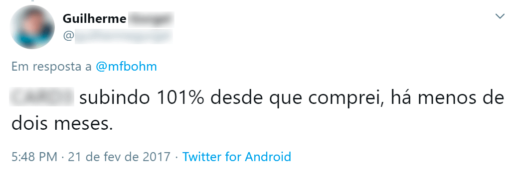 "Ah, mas agora tudo despencou… quem entrou deve ter ficado no prejuízo"