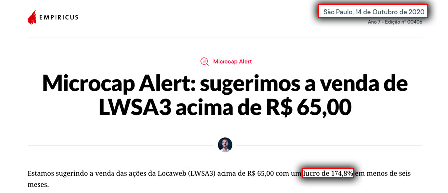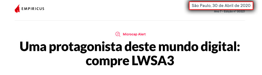 Se você tivesse entrado na operação LWSA3, teria colhido um lucro 8 vezes maior que o Ibovespa do mesmo período.