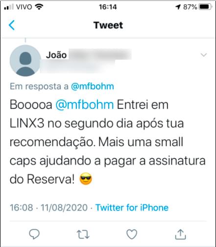 Recomendei a compra das ações de LINX S.A por R$ 23 cada.