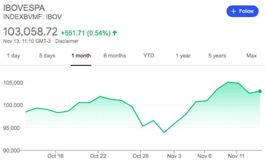 A Bolsa brasileira subiu bem nesse período, com uma recuperação de +22%.