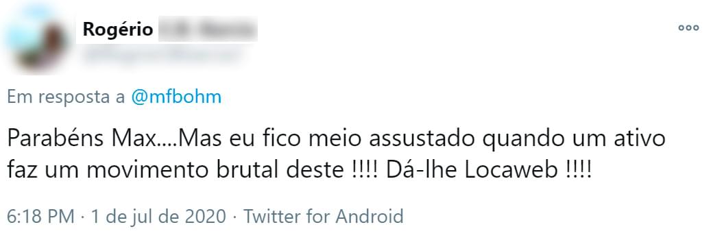 Em 30/04, eu recomendei a compra das ações da empresa LocaWeb, por R$ 23,96 cada uma.