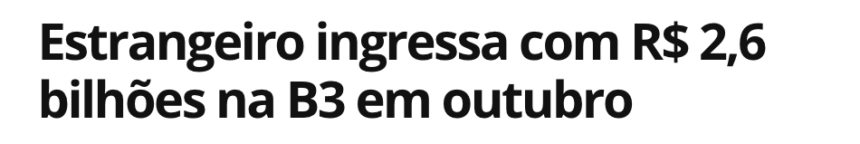 Em outubro até o dia 20, o fluxo está positivo em R$ 2,647 bilhões, de acordo com matéria publicada no Valor Econômico.