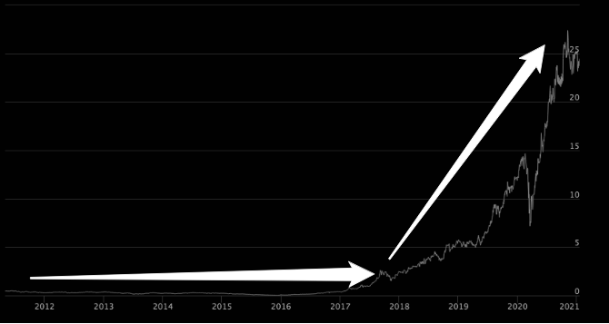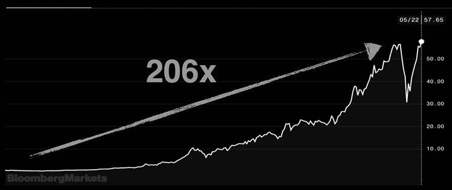 Na esteira, o preço das suas ações simplesmente explodiram em valorização.