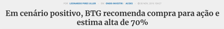 Os mais de 29 mil assinantes que atualmente acompanham minhas indicações já sabem o nome da ação e já estão comprando.