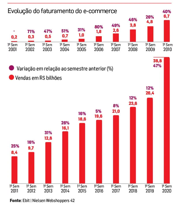 O e-commerce brasileiro vem aumentando de tamanho anos após ano.