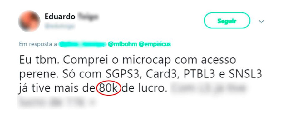 E isso vale para todas as demais microcaps a que você terá acesso na série.