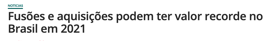 E, como você viu acima, fusões e aquisições devem continuar crescendo a todo o vapor no Brasil, principalmente após a vacinação e a retomada da economia.