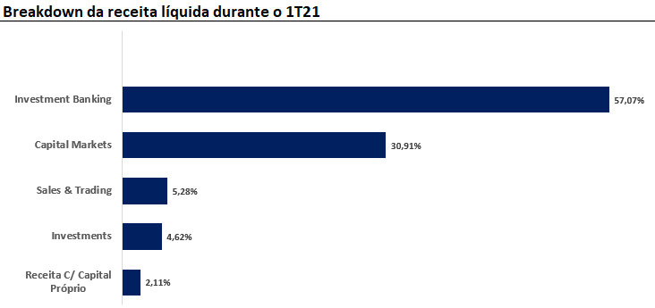 Ela é responsável pela execução de serviços de assessoria financeira e estratégia, em sua maioria, fusões e aquisições, compras ou vendas de participações, captação de recursos, reestruturações societárias etc…