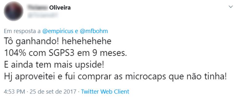 Mesmo que você não fique, mas invista na microcap "Mini BTG", eu adoraria receber uma mensagem com os resultados que você obteve.