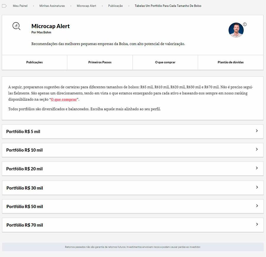 Você poderá inclusive conhecer as carteiras que nós montamos pra você com as melhores microcaps do mercado.