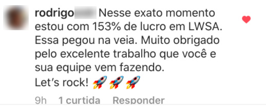 E o Rodrigo, com 153% de lucros em uma de minhas recomendações...