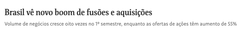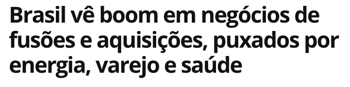 Um dos motivos que me levam a crer nisso é a forte atuação da empresa no mercado de fusões e aquisições.