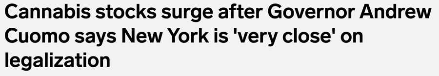 "Ações da maconha sobem depois que governador Andrew Cuomo diz que Nova York está muito perto da legalização"