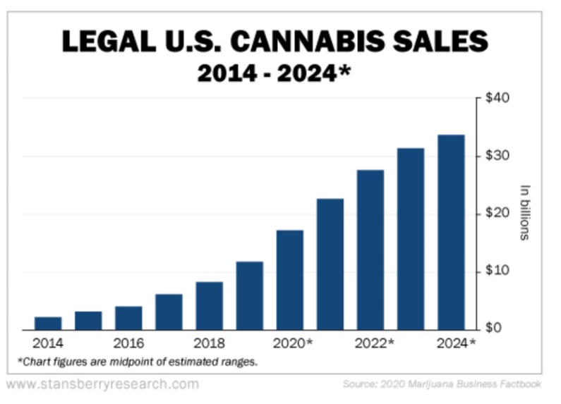 Se isso ocorrer, a maior indústria de cannabis do mundo será criada com mais de US$ 100 bilhões de vendas anuais.