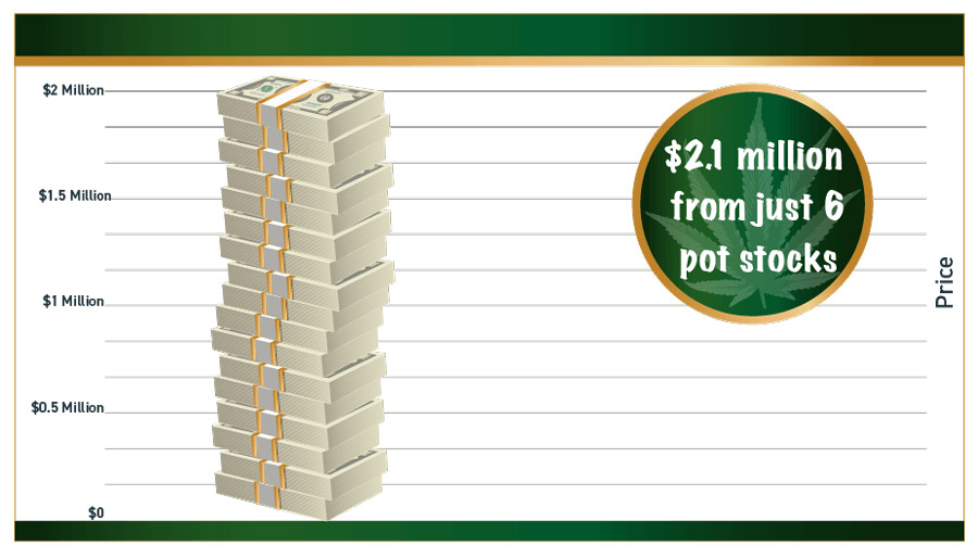 E, se você tivesse colocado US$ 1.000 em cada uma… teria mais de US$ 2,1 milhões com apenas 6 ações de cannabis.