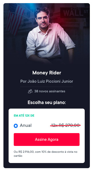 Como disse, um ano de assinatura da Money Rider é vendido por 12 x R$ 270.