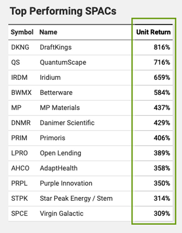 Estes são alguns dos retornos que as melhores SPACs proporcionaram aos seus acionistas.