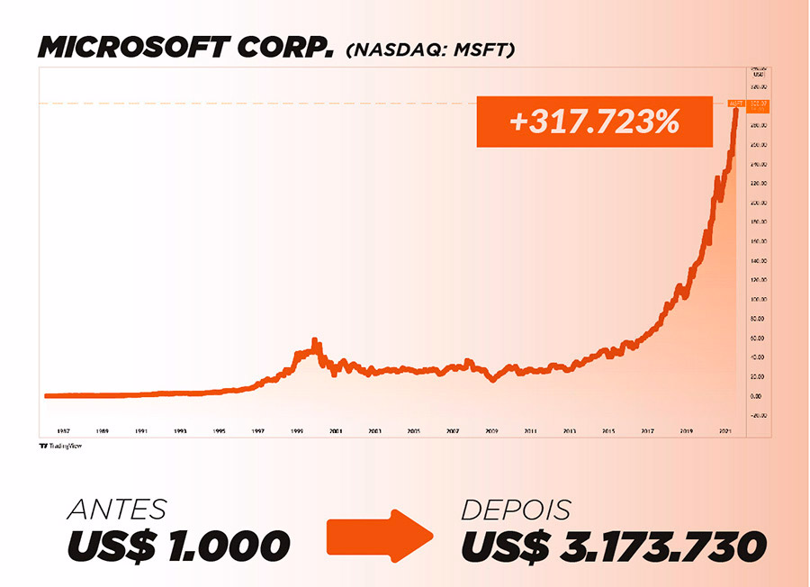 Estou falando de possibilidades de multiplicar o capital em 20x, 30x, 50x, 100x ou ainda mais, muito mais, para quem investir com visão de longo prazo.