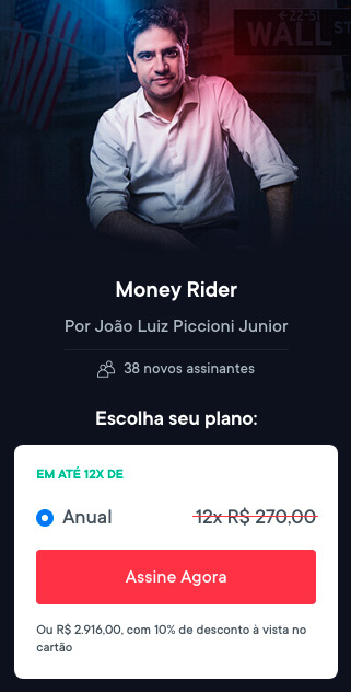 Em nosso site, você poderia assinar o Money Rider agora mesmo por 12x 270 reais.