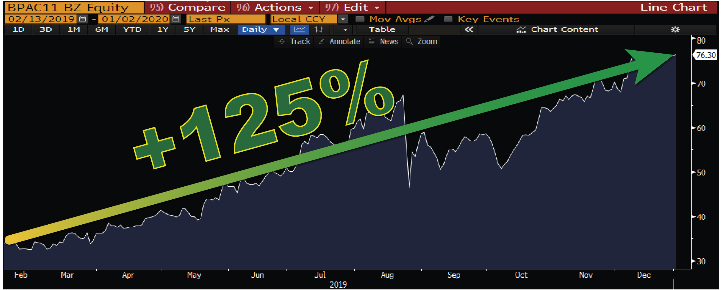 Banco BTG Pactual (BPAC11) que já acumula alta da ordem de 125%...
