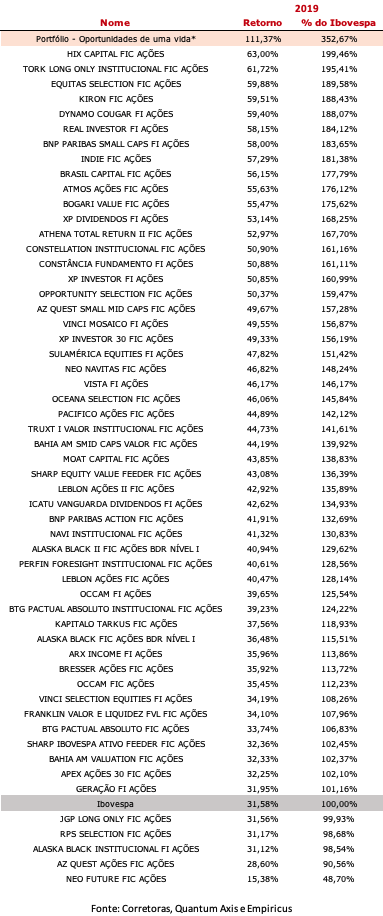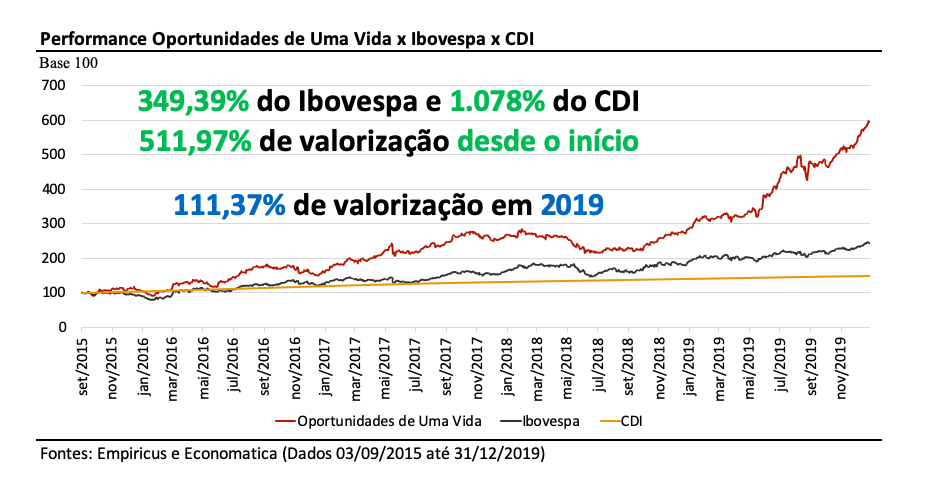 Em 2019, ela rendeu 111,37% ou 352,67% do Ibovespa, principal benchmark.
