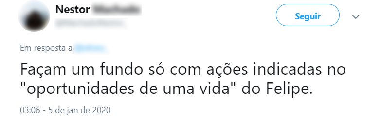 Passa longe de ser disso. Continuamos grande fãs deles, admiramos imensamente o trabalho que eles têm prestado para todo o mercado de capitais brasileiro.