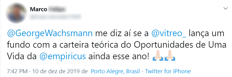 É motivo de orgulho para mim inclusive na física aplicar meu dinheiro pessoal na Vitreo.