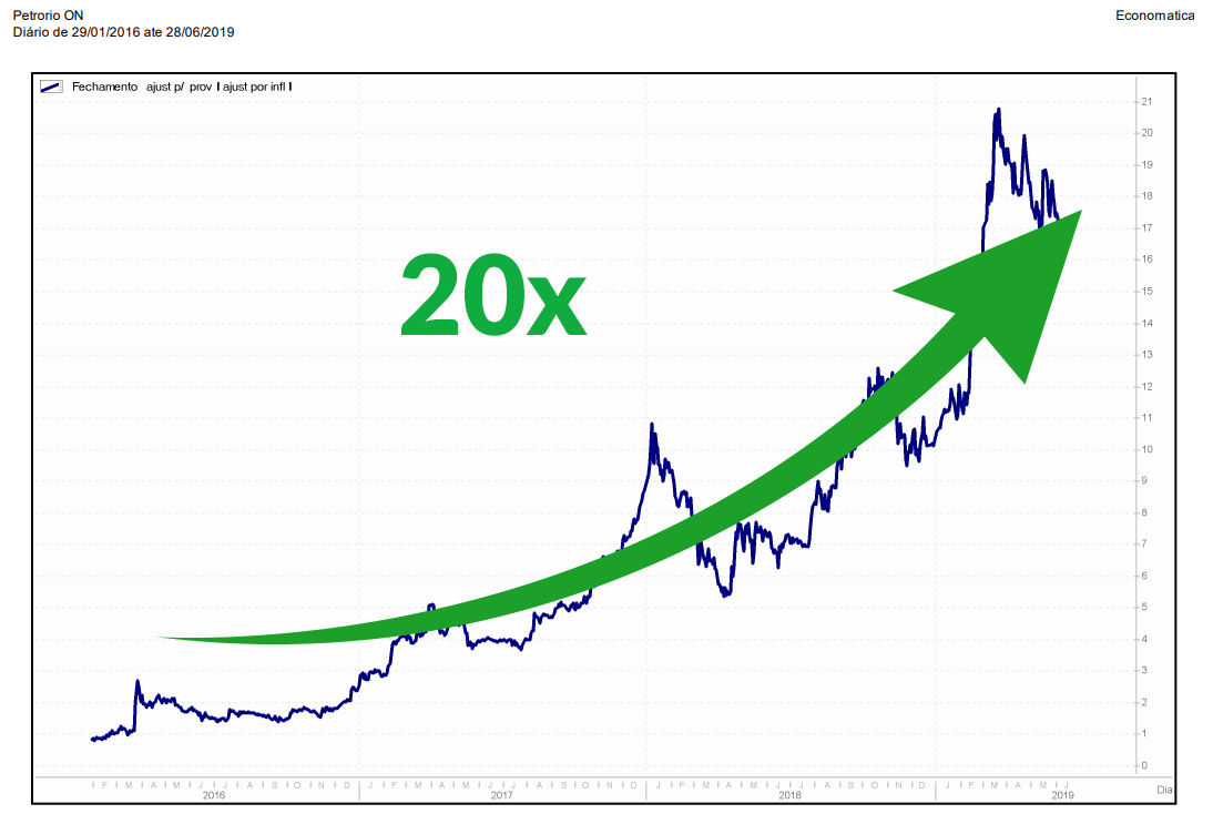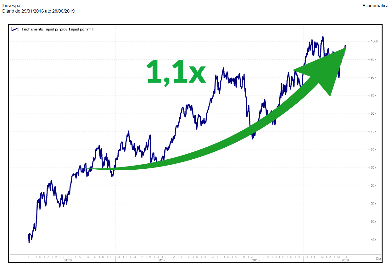 Entre 2016 e 2019 o Ibovespa subiu +110,5%.