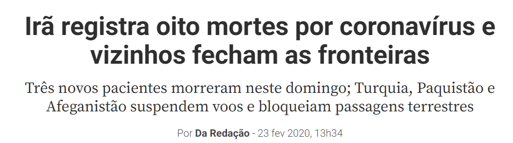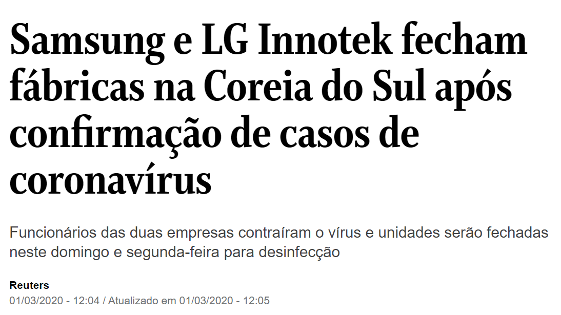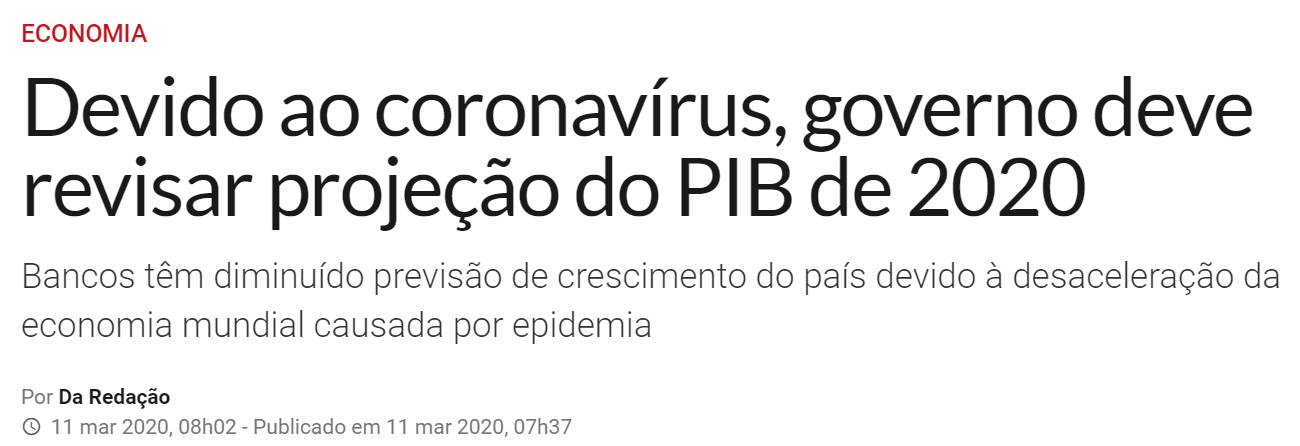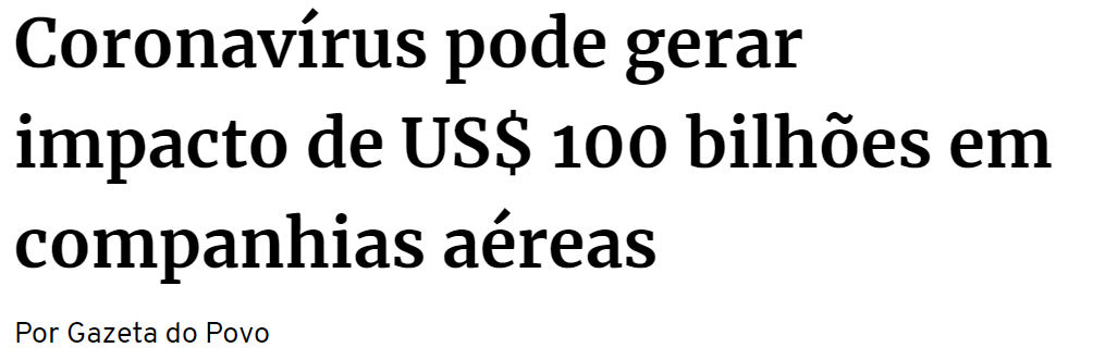 A China já parou há semanas, Irã e Itália também… Países estão fechando fronteiras… Fábricas estão encerrando operações pelo mundo… Pessoas não saem de casa, muitas estão presas, de quarentena, em lugares distantes de suas residências… Estima-se prejuízo de bilhões de dólares para diversos setores e mercados ao redor do mundo.